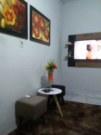 02 QUARTOS, SALA DE ESTAR, BANHEIRO SOCIAL, COZINHA, AREA DE SERVICO, QUINTAL TODO ACIMENTADO, LADO DA SOMBRA, FORRADA EM GESSO E PISO EM CERAMICA BRANCA |